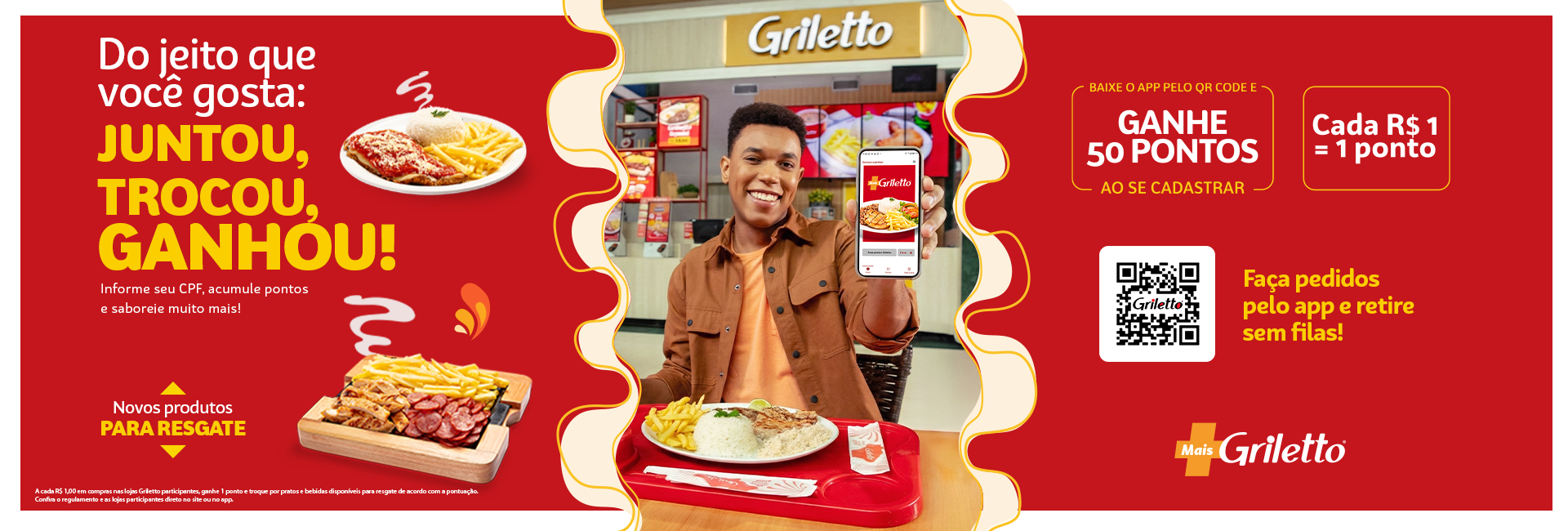 Celebramos os nossos 20 anos de Brasil da melhor maneira! Buscando unir o design moderno aos elementos Griletto que todo o Brasil ama, desenvolvemos uma nova identidade visual única para nossas lojas. O tempero brasileiro está em nosso DNA, que busca sempre evoluir, transformar e levar o melhor a nossos clientes. De cara nova e com o mesmo sabor irresistível, celebramos esse marco junto a você.